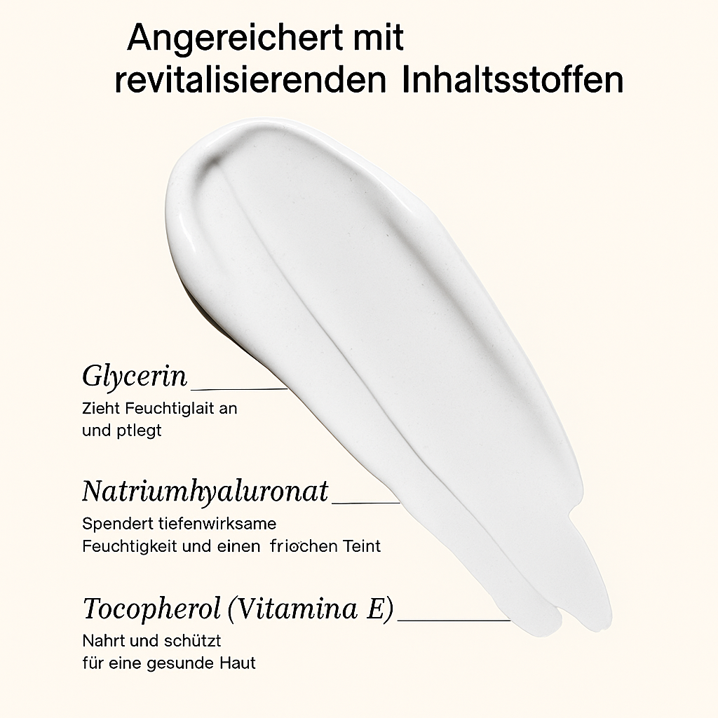 Mit Hyaluron, Aloe Vera, Vitamin E und mineralischem Schutz – ohne Reizstoffe, ohne schwere Silikone.